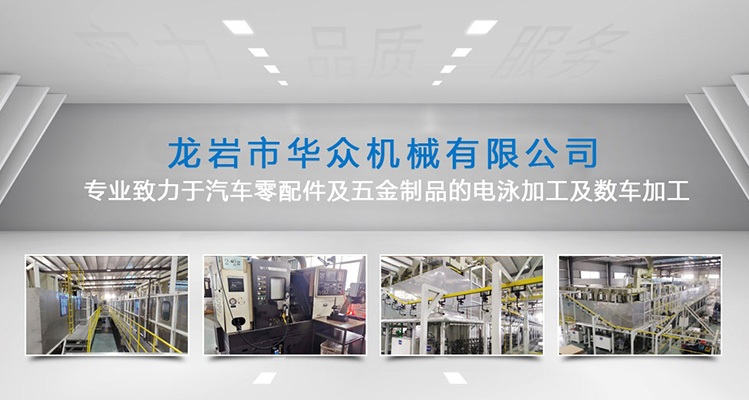龍巖市華眾機械有限公司網站上線啦!!! 龍巖市華眾機械有限公司前身為龍巖市杰瑞特工貿有限公司,成立于2010年12月。新廠座落于福建省龍巖市新羅區東寶工業集中區,注冊資本500萬元,占地面積約27,000平方米,員工60多人 。公司擁有涂裝行業10年以上工作經驗的技術團隊。2018年8月經NSF-ISR評估獲得IATF16949質量管理體系認證通過并取得證書。 現專業致力于汽車零配件及五金制品的電泳加工及數車加工。
